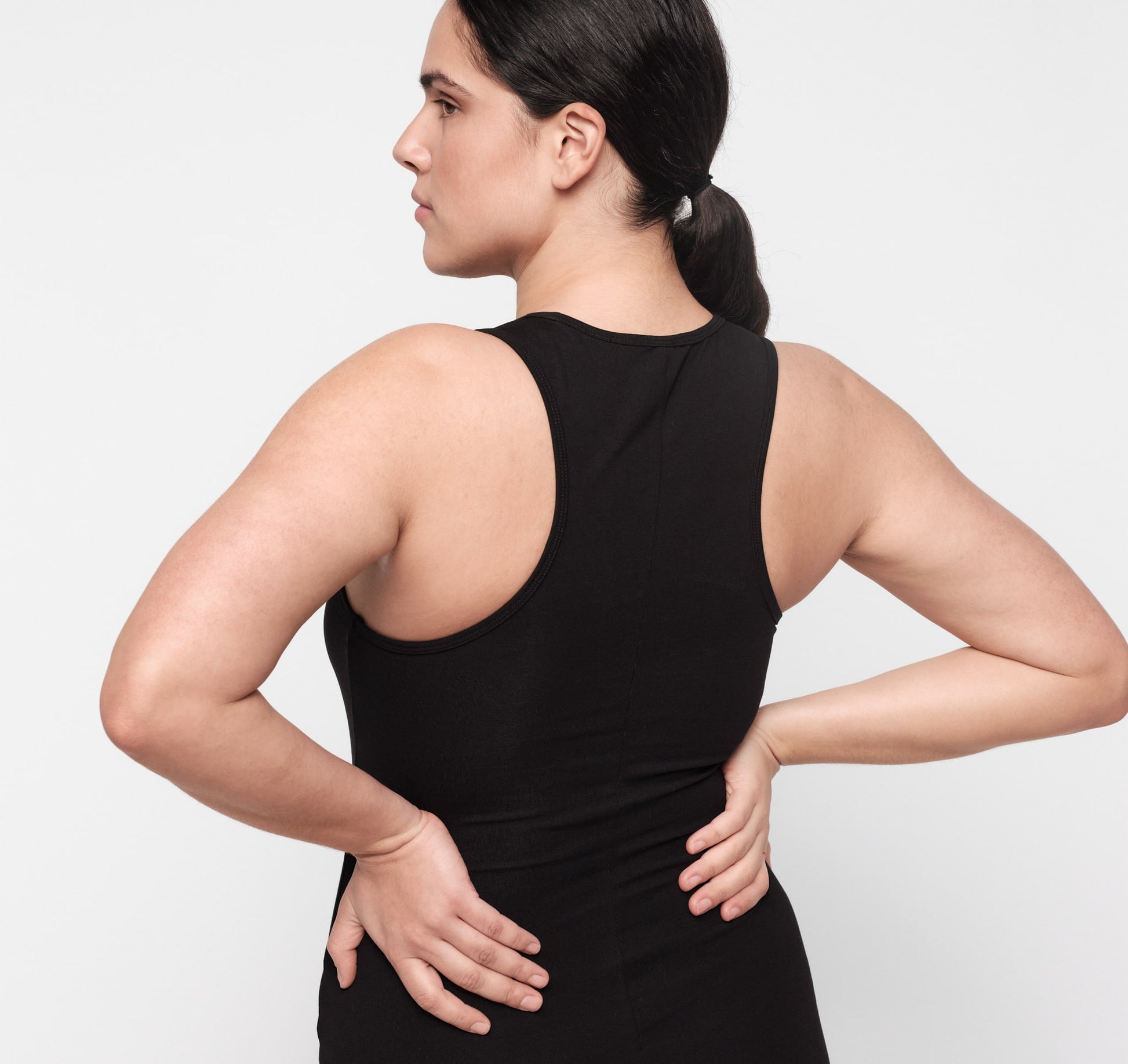 • Basic tank-style mini dress with a body-hugging fit