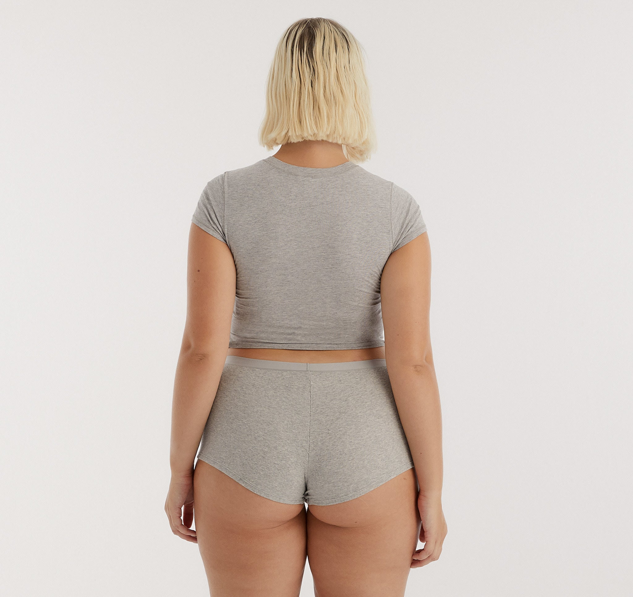 Mid-rise boy short made with 95% ultra-soft, ribbed organic cotton. Finished with an embossed elastic logo waistband.