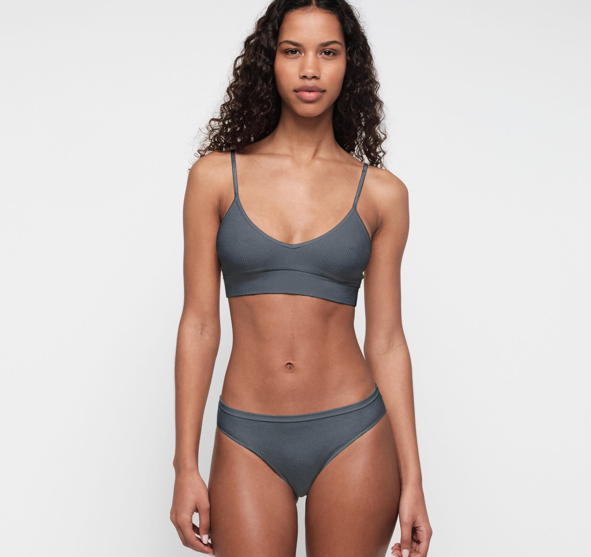 Soft, lightweight, and high-cut. A seamless waffle knit that feels barely there but still holds its place in your everyday rotation.