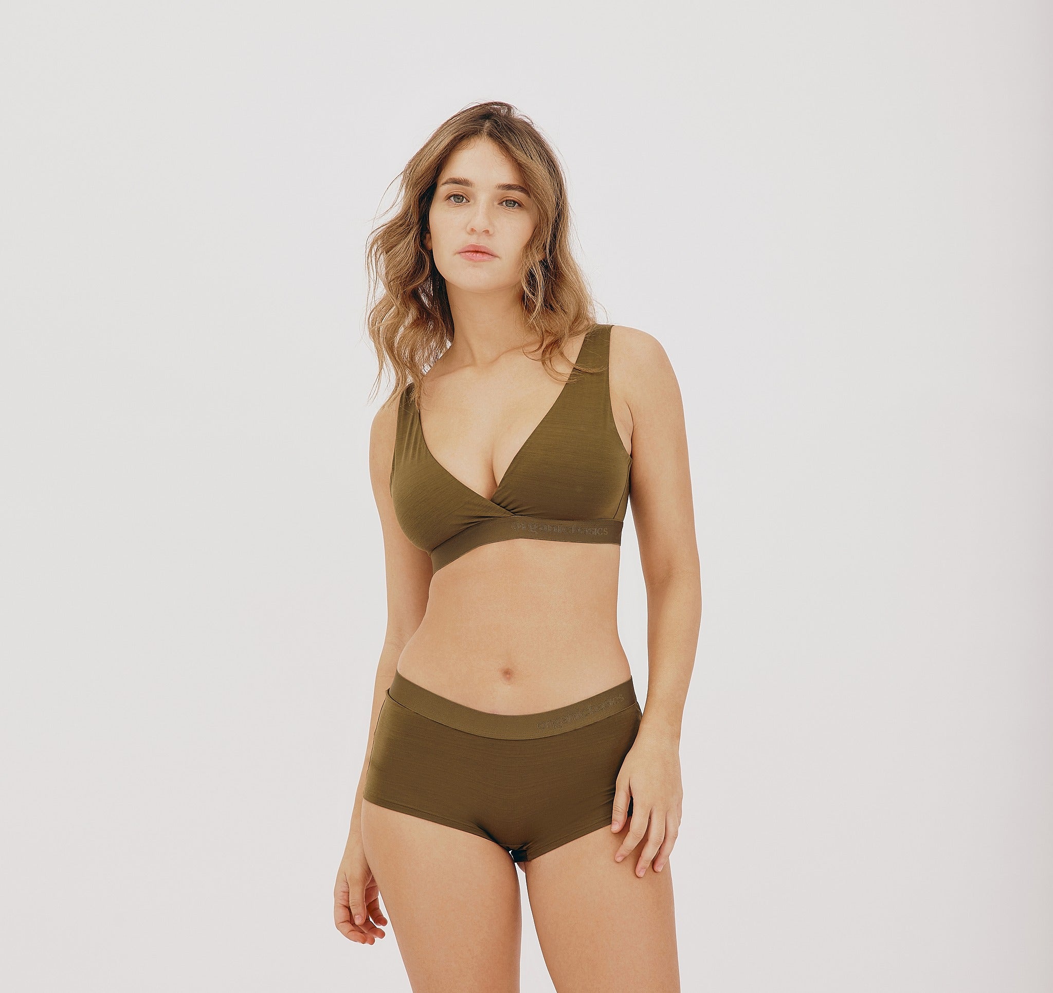 Supportive, and soft - this airy bra is as comfortable as it is cute. Made with TENCEL™ Lyocell fibers, featuring a soft elastic underband, and a cross-over design for added support. So comfortable you'll forget you're wearing it.