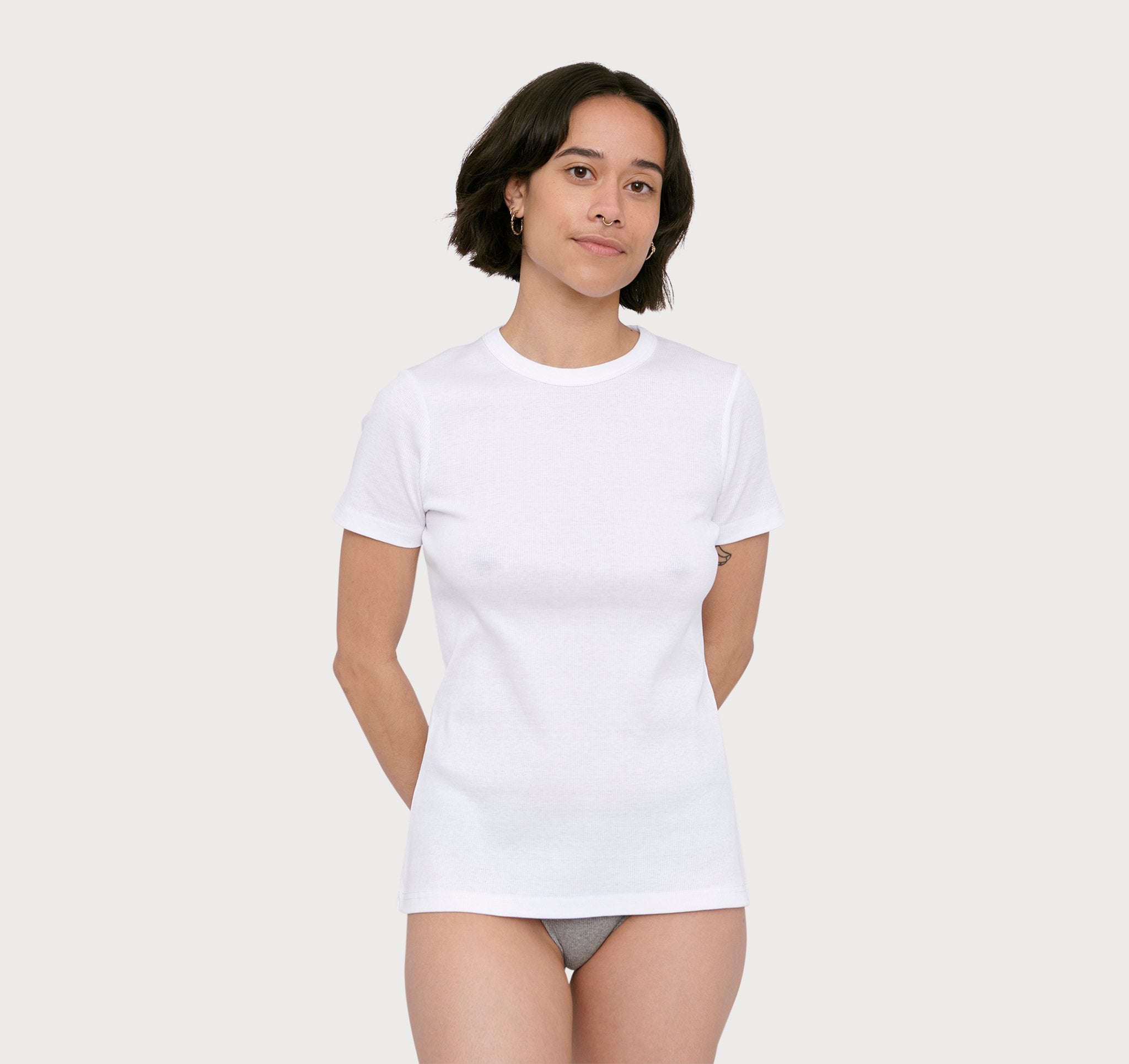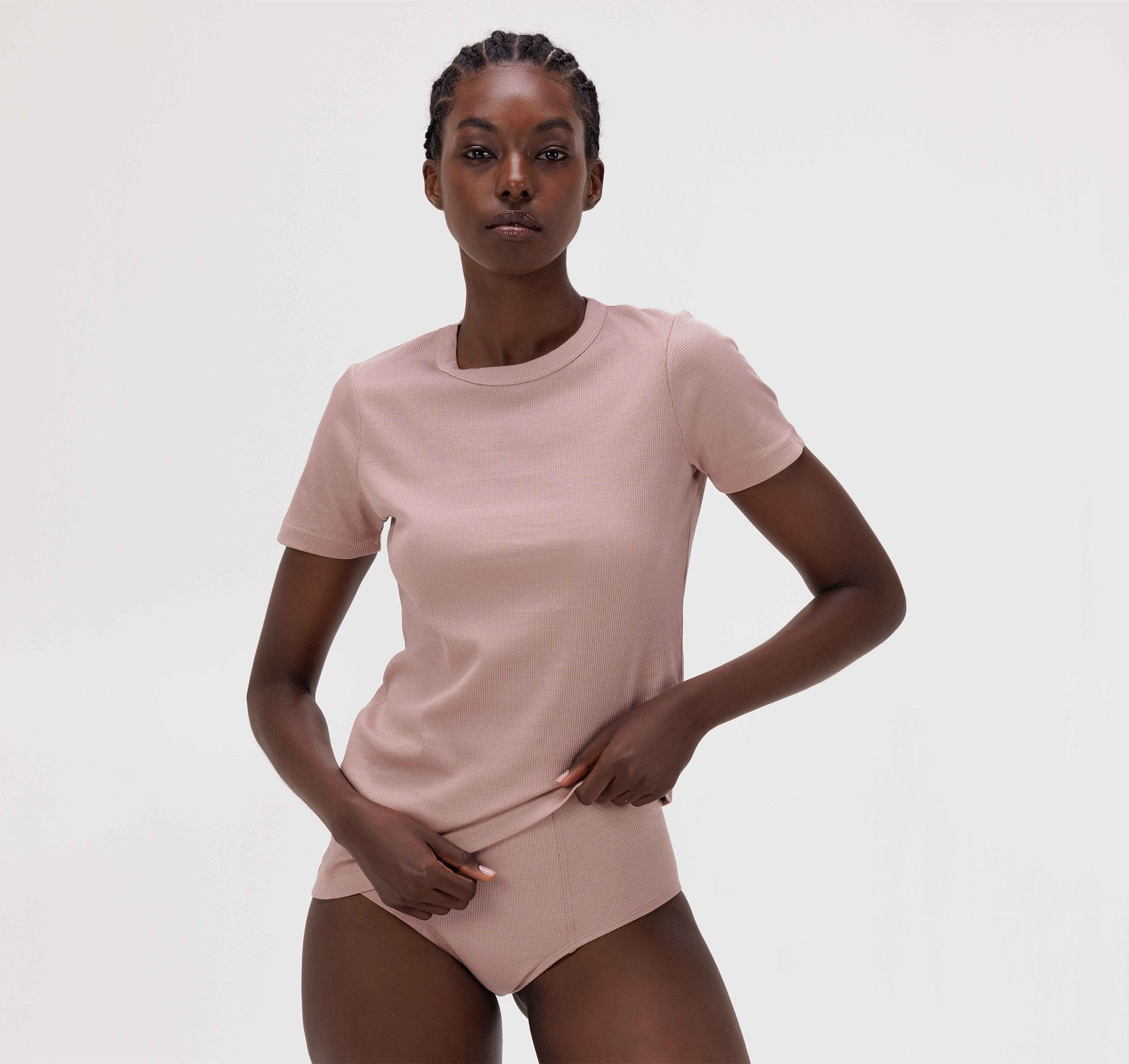 This ribbed texture tee is made from 100% organic cotton to feel stretchy, soft, and super comfortable.