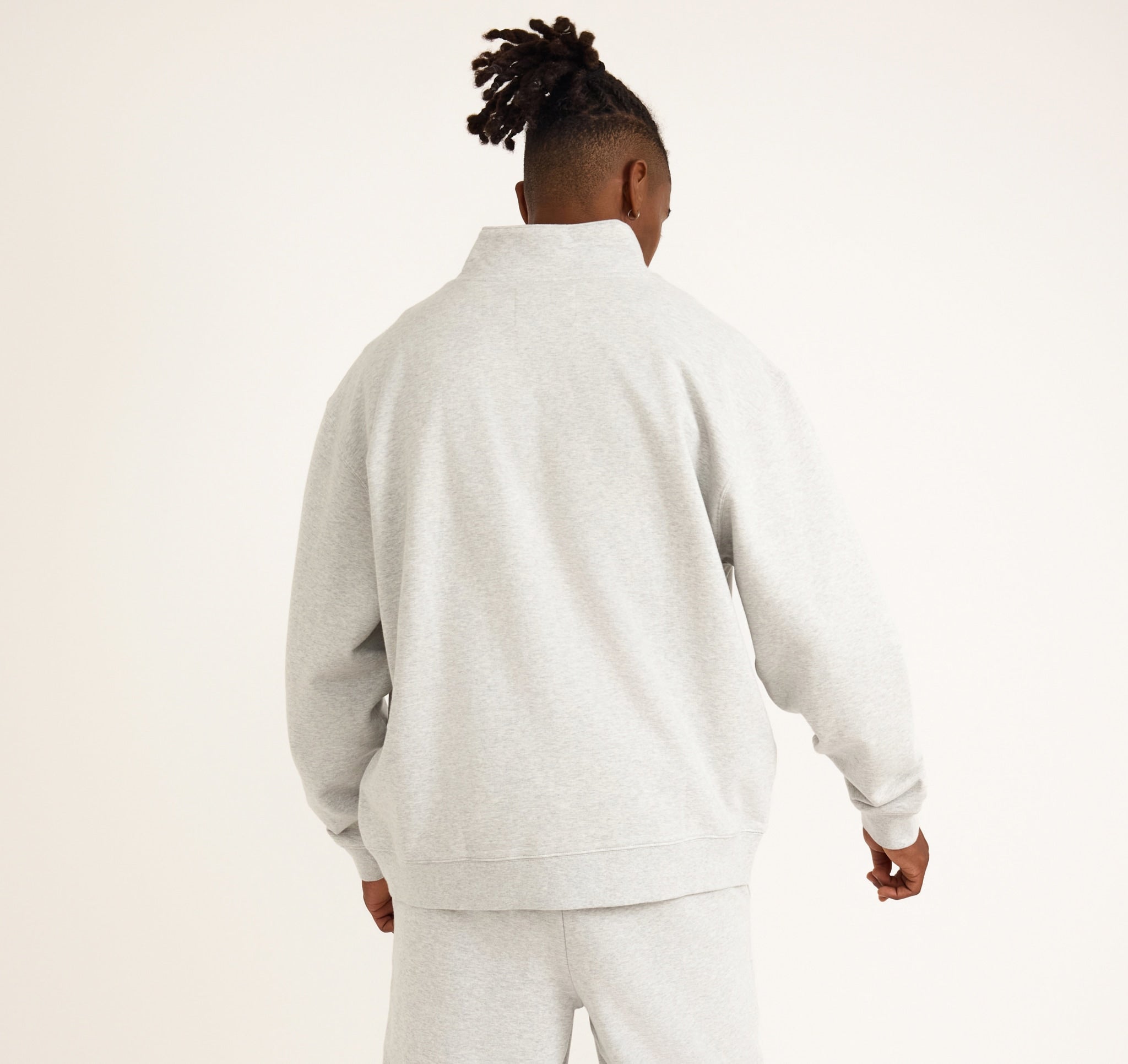 • Classic boxy sweatshirt with a mock neck and half zipper