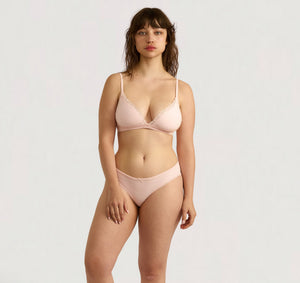 • Pullover style triangle bralette with a low, v-neckline and natural cleavage.