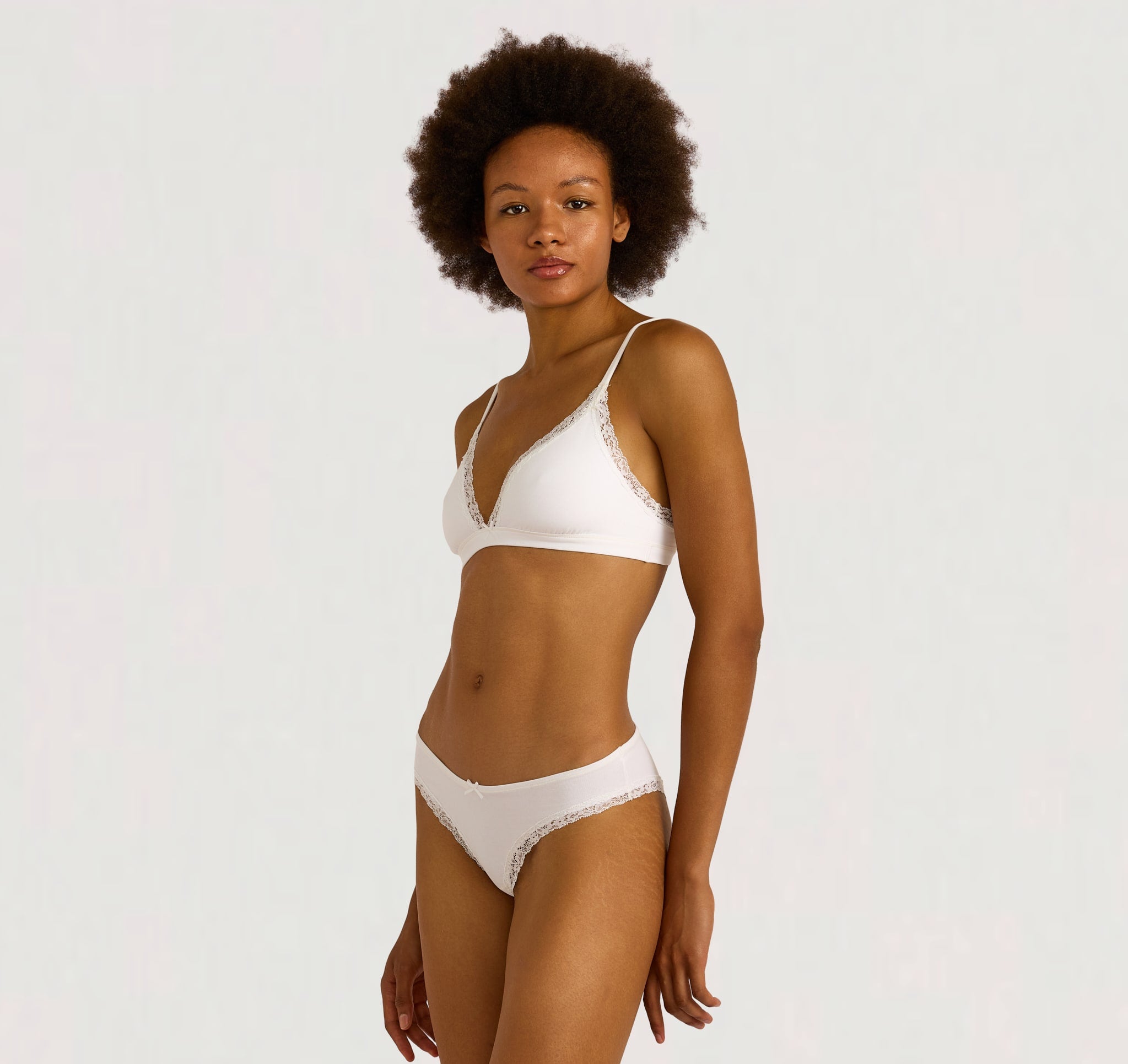 Stretchy, sweet, and trimmed with lace. The Flex Lace Triangle Bralette offers natural coverage and everyday support with a cute touch.