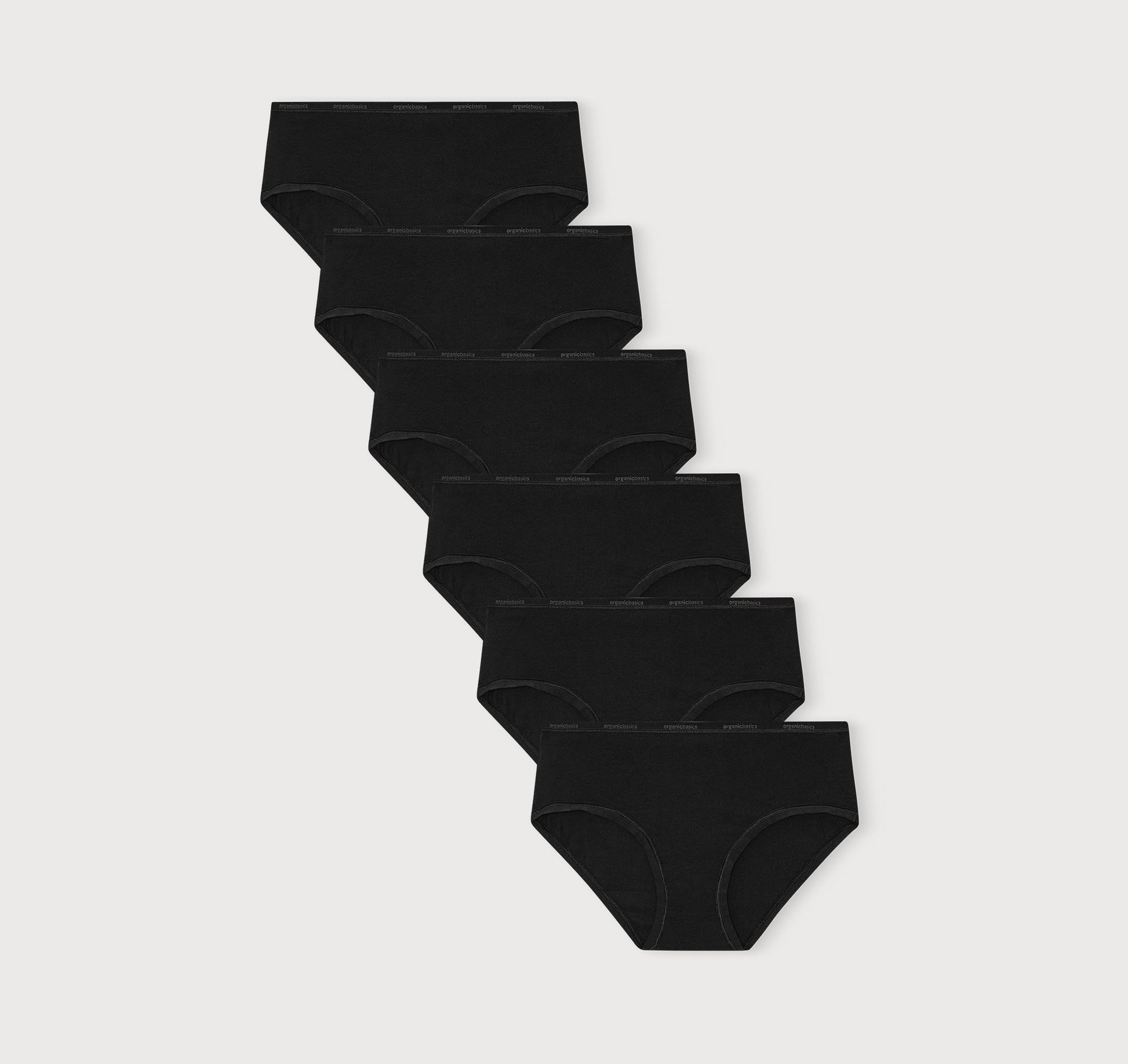 • A 6-pack of classic, mid-rise bikini style briefs made with organic cotton