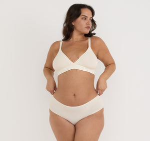 Cotton is a natural fiber that is commonly used for its breathability and softness. Using organic cotton instead of regular cotton has the potential to build soil health, as it is grown without the use of synthetic fertilizers. - Outer Layer (Shell/Wings): 90% Organic Cotton, 10% Elastane - Inner Layer (Cup lining): 63% Polyester, 37% Cotton - Hand wash cold - Only non-chlorine bleach when needed. Do not iron. Do not dry clean.