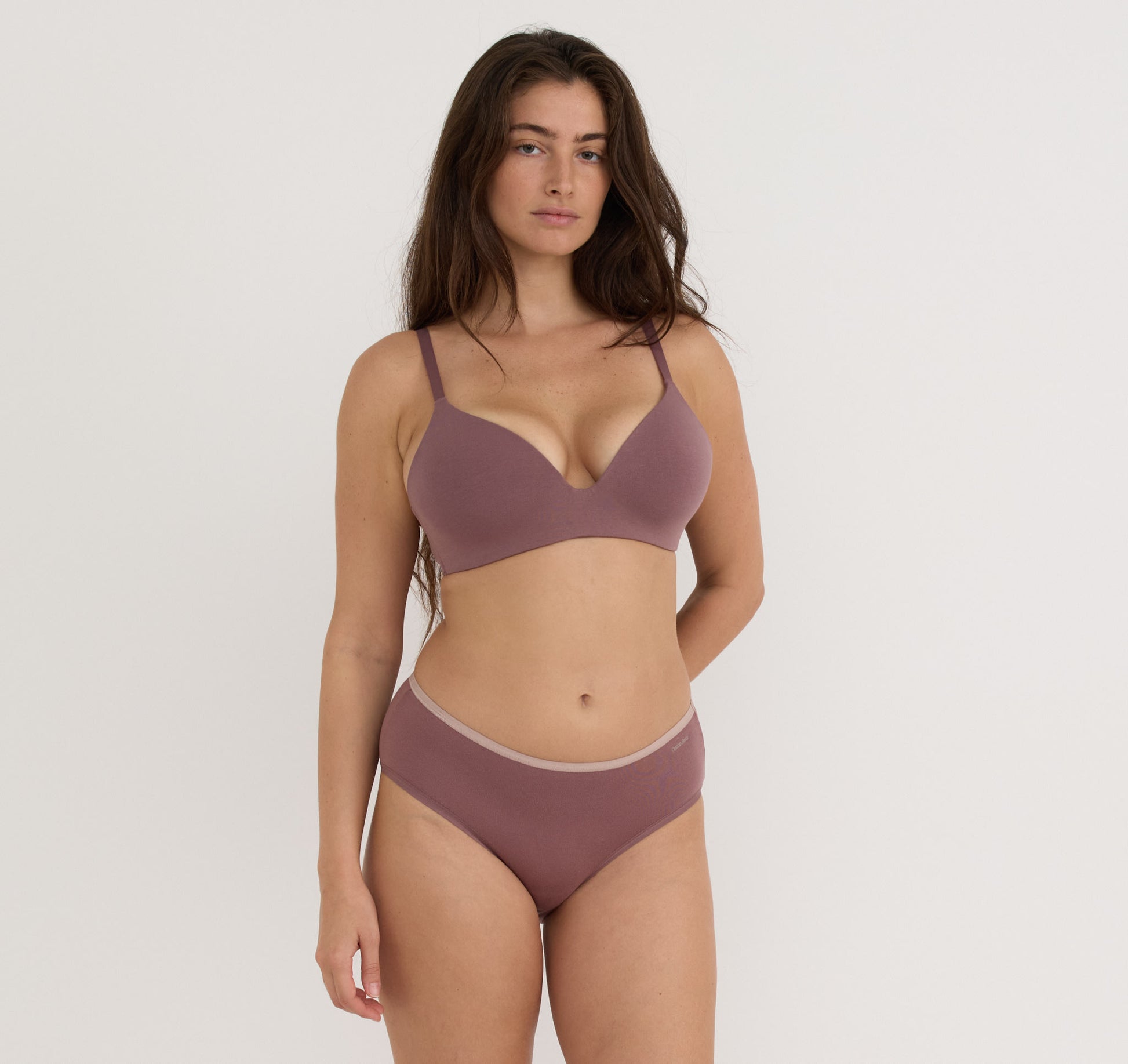 • Wireless padded bra with a plunge, triangle neckline that creates a small push-up effect