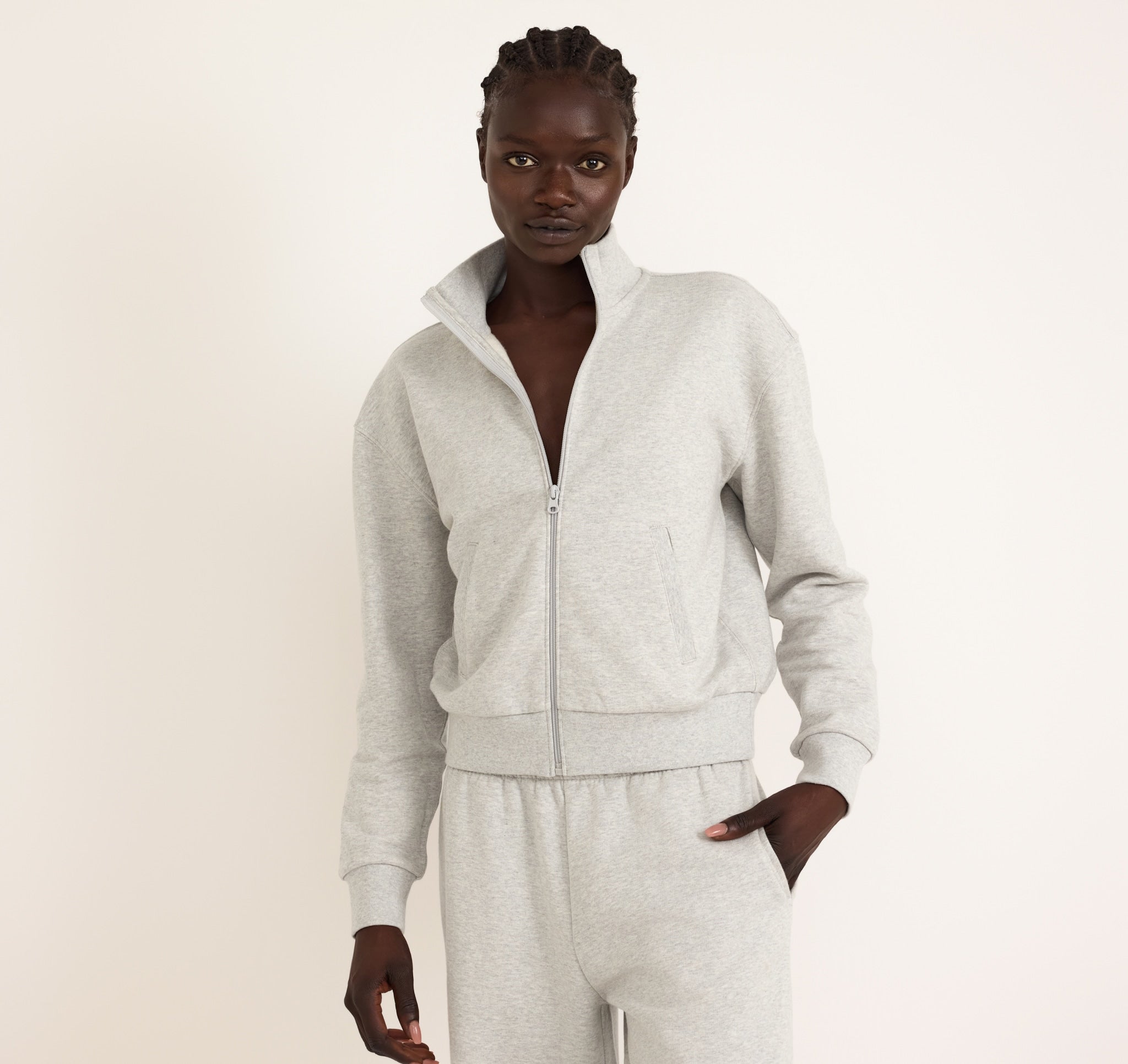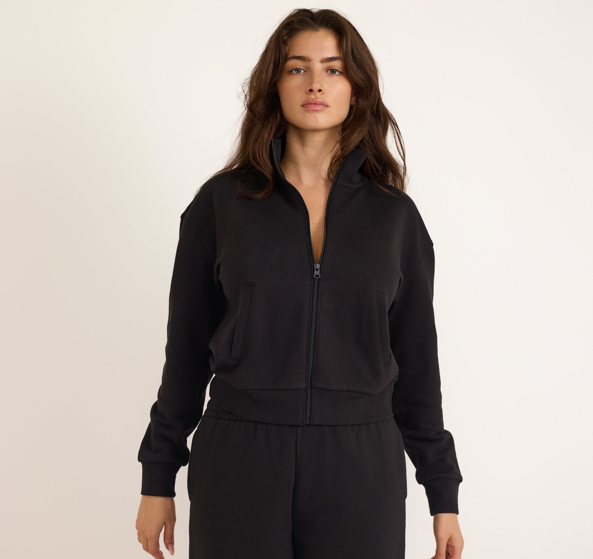 From weekend runs to movie marathons, this track jacket is the comfy, sporty sidekick you need to get to the finish line. Featuring a boxy cut and heavyweight 100% organic cotton fabric.