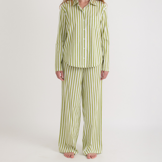 Vores pyjamas bukser er lavet med materialer som økologisk bomuld og TENCEL™ Lyocell, der sikrer en blød og åndbar oplevelse. Disse materialer er valgt for deres evne til at reducere miljøpåvirkningen sammenlignet med konventionelle alternativer. Vi bruger materialer som, men ikke udelukkende, økologisk bomuld for at sikre, at vores produkter er mere ansvarlige. Disclaimeren, "Nogle gange økologisk, nogle gange ikke – men altid gennemtænkt indkøbt," gælder for vores materialevalg.