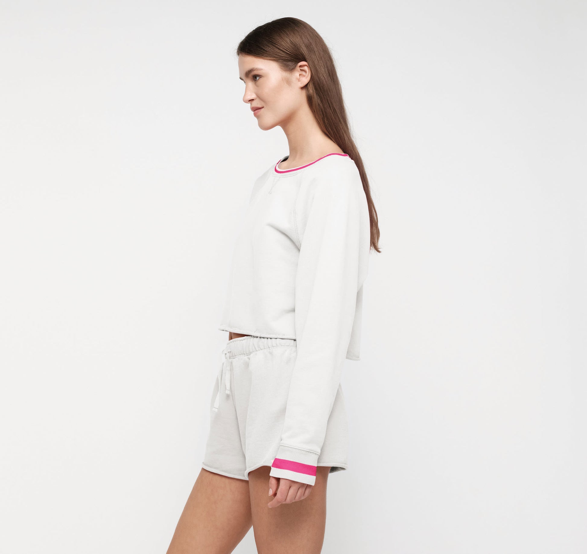 A soft French terry fabric with an unbrushed finish for a breathable, lightweight feel.
