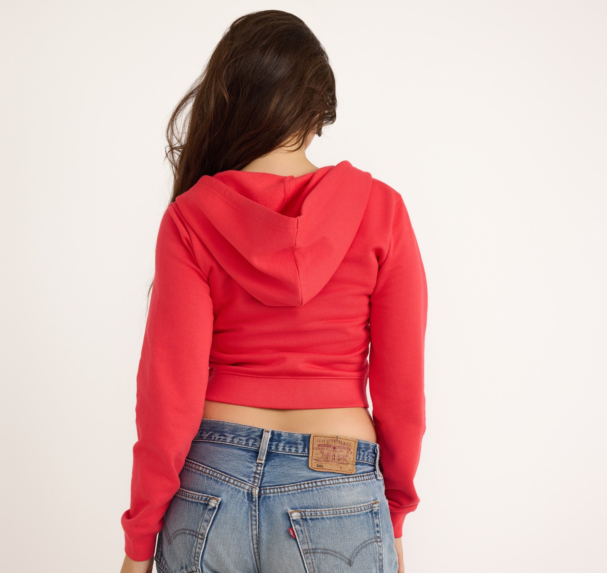 • Flattering, slim-fitted hoodie with a cropped body and rib details