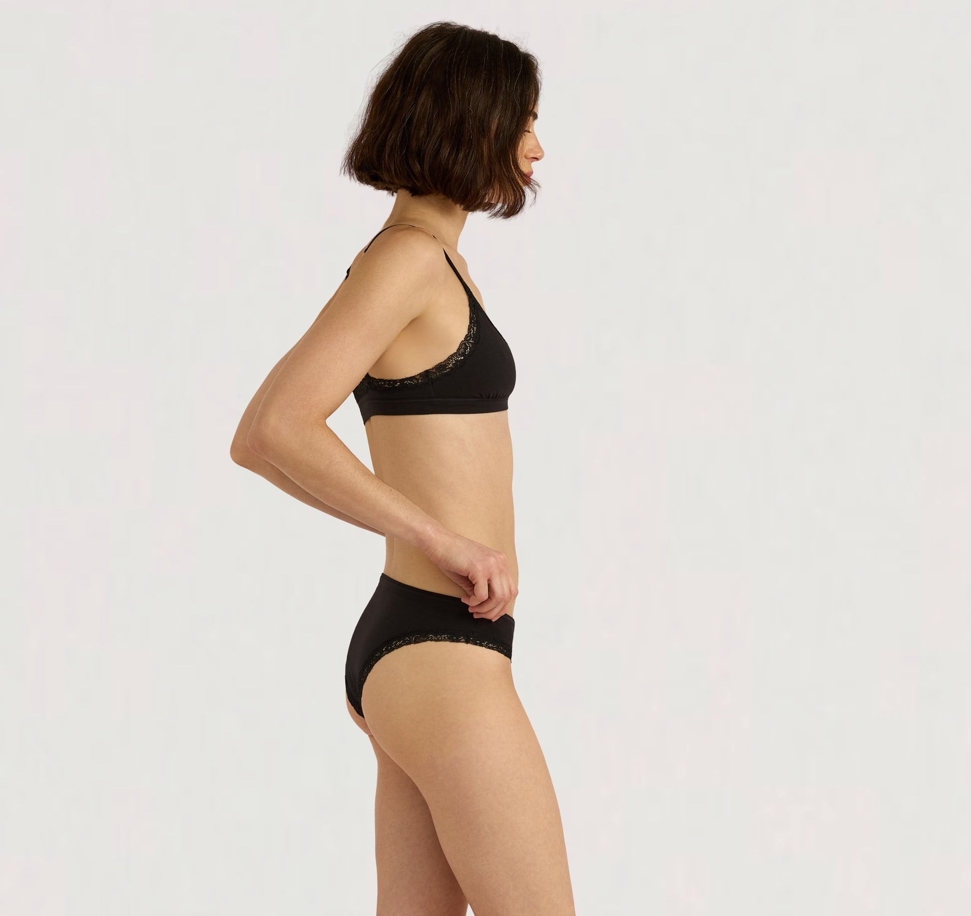 Cotton is a natural fiber that is commonly used for its breathability and softness. Using organic cotton instead of regular cotton has the potential to build soil health, as it is grown without the use of synthetic fertilizers. - Body: 90% Organic Cotton, 10% Elastane - Inner lining: 90% Polyamide, 10% Elastane - Lace: 50% Recycled Polyamide, 39% Polyamide, 11% Elastane - Machine washable with similar colors. Maximum 40°C wash - We recommend the conscious choice of 30°C - Snug, body-hugging fit in a soft and stretchy material