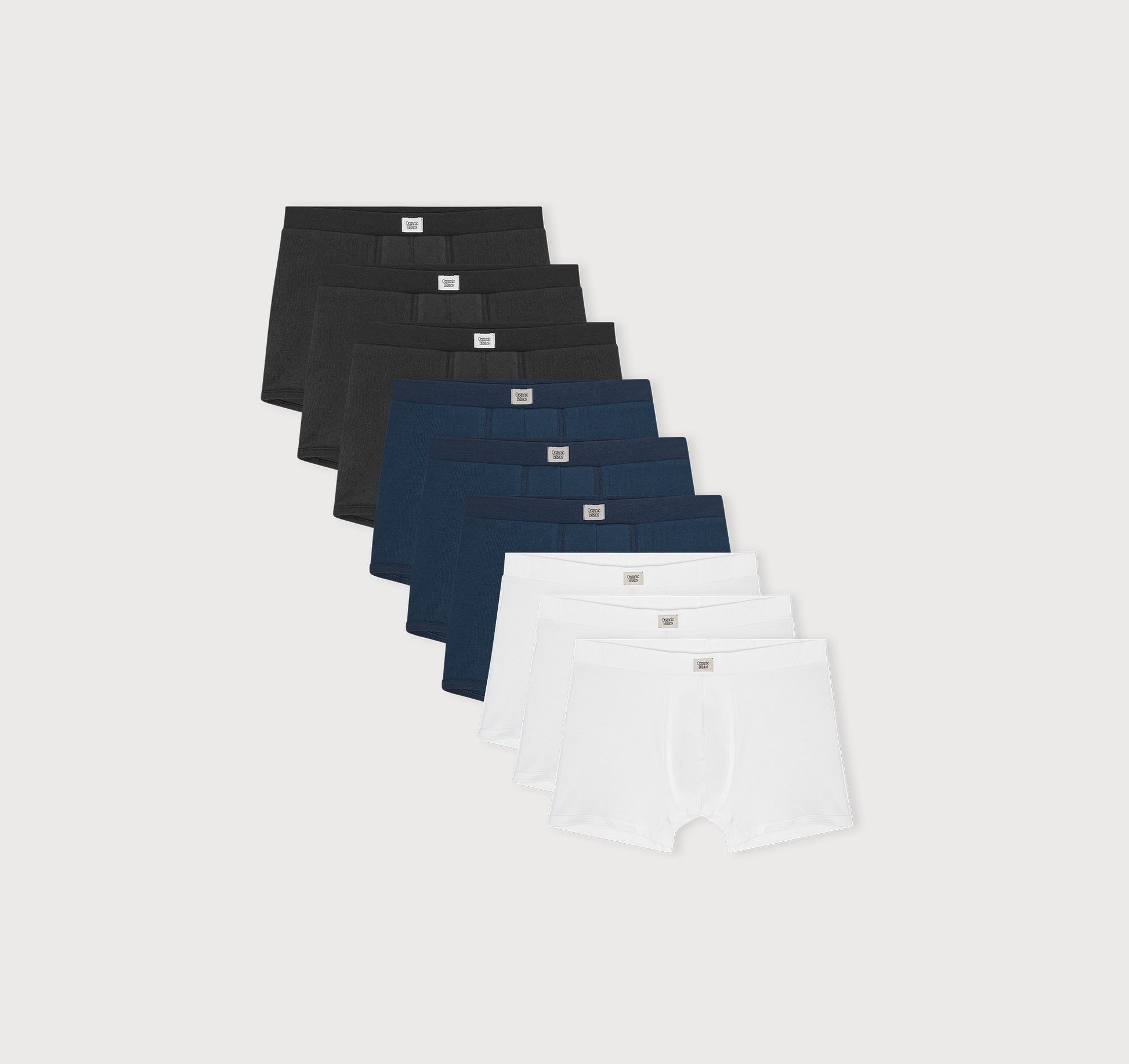 • A 9-pack of our ribbed trunks made with 95% organic cotton.