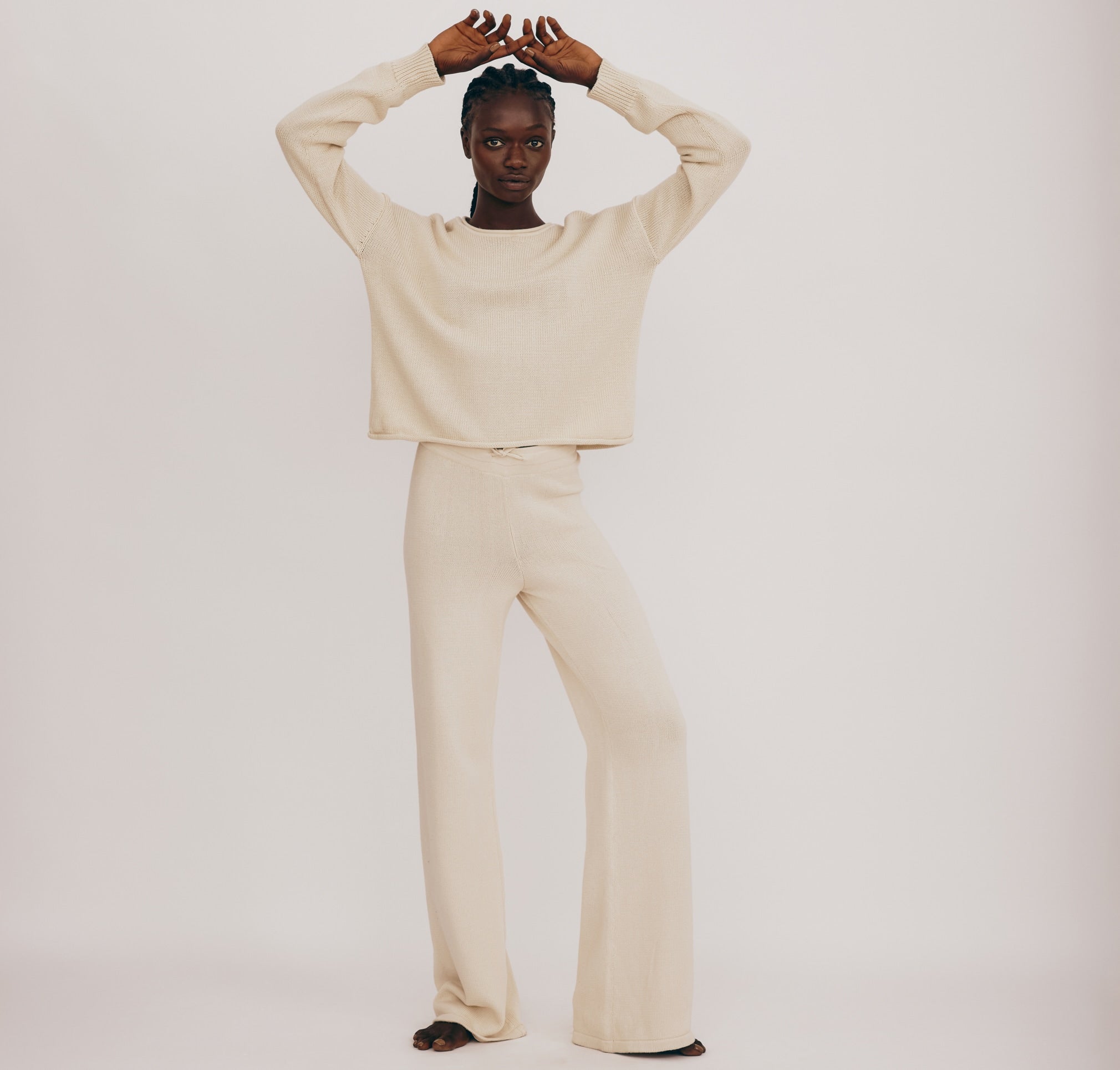 Layer up in this 100% organic cotton sweater, crafted from knitted material that falls just right. Designed in a boxy, slightly cropped silhouette.