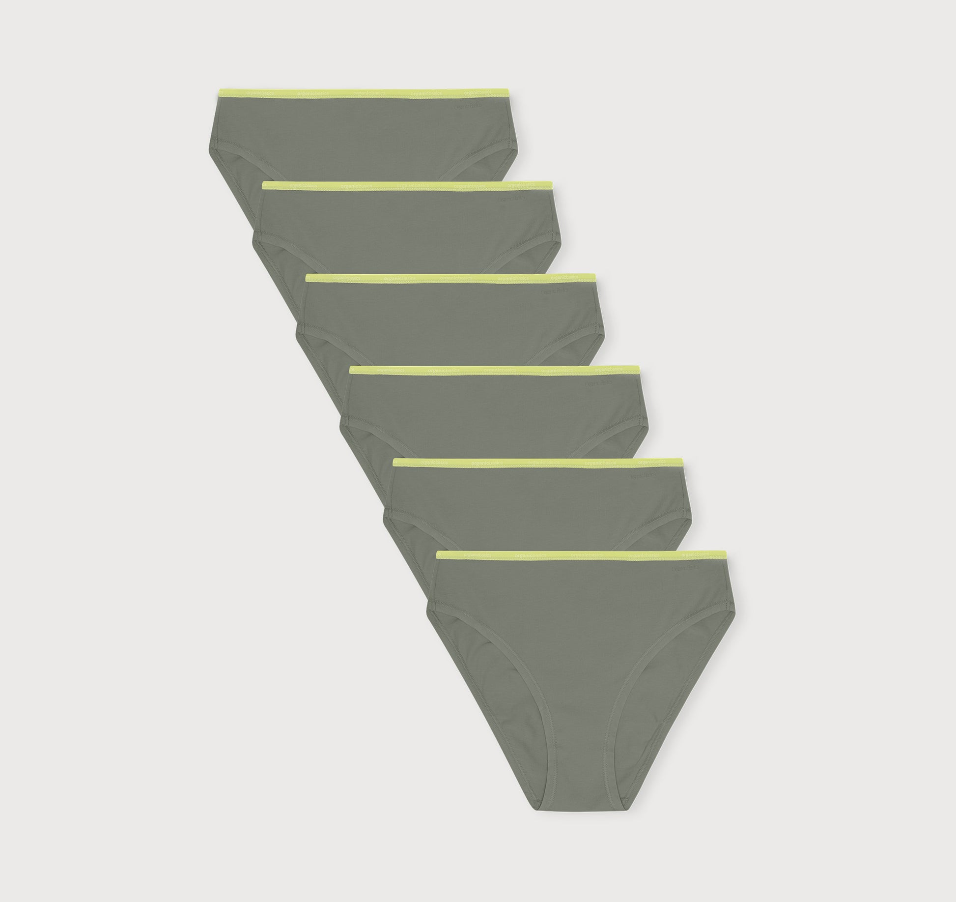 A 6-pack of our ultra-flattering pair of briefs in a mid to high-rise cut made with organic cotton. Made with high-cut legs and an embossed elastic logo waistband.
