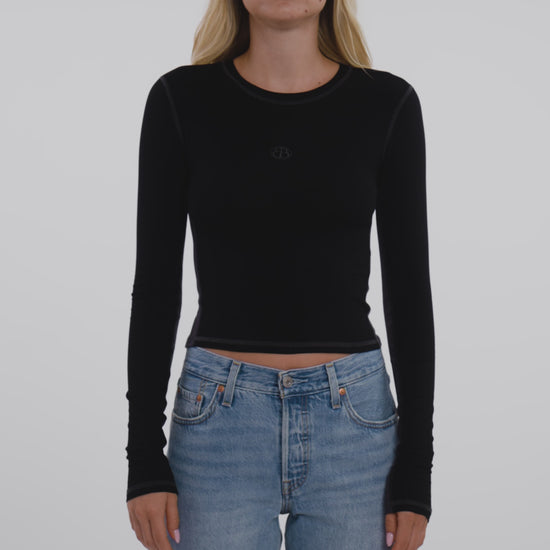 • Fitted 90s-style long sleeve tee featuring embroidered butterfly logo.