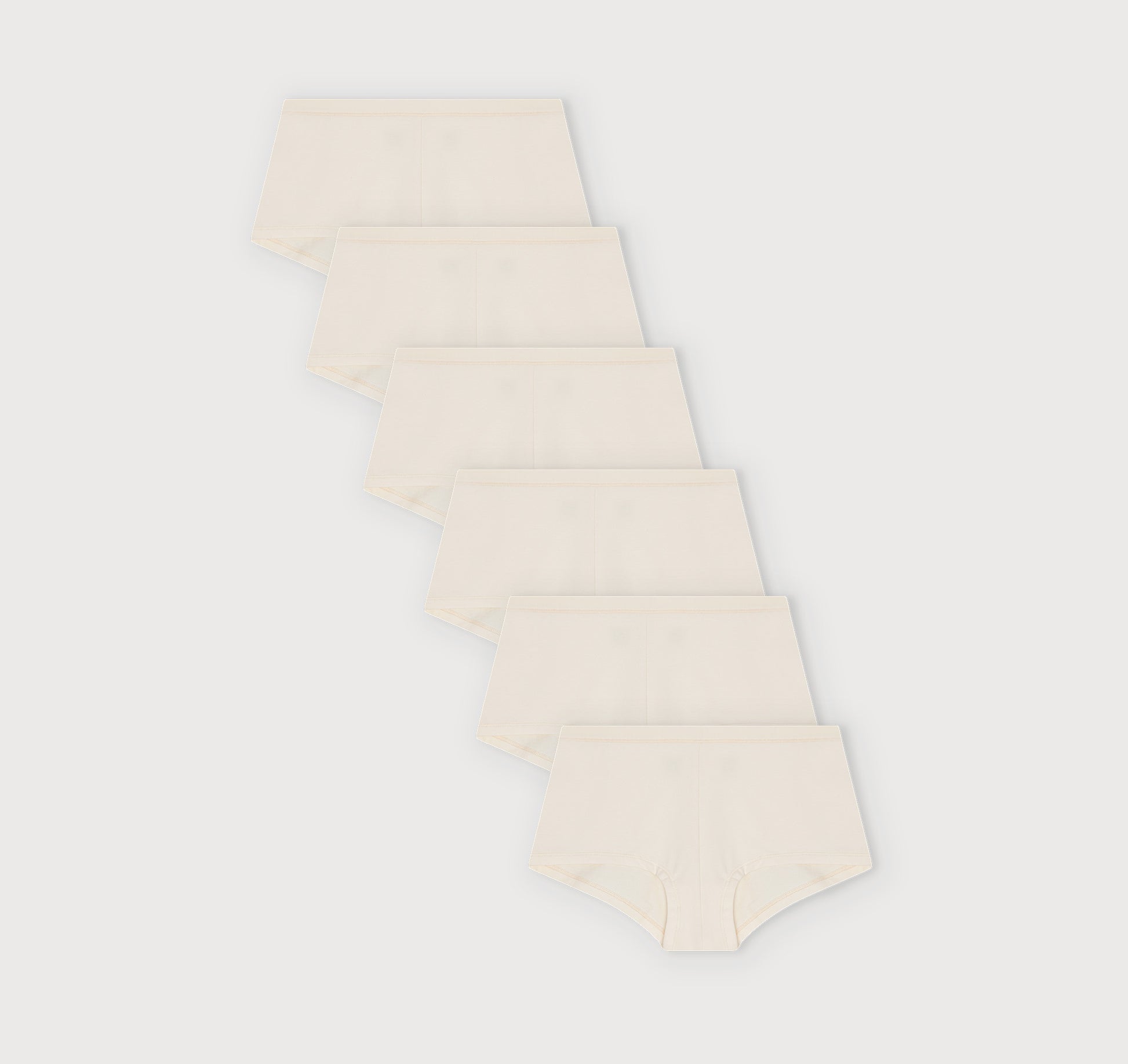 • A 6-pack of our mid-rise boy shorts made with 95% organic cotton