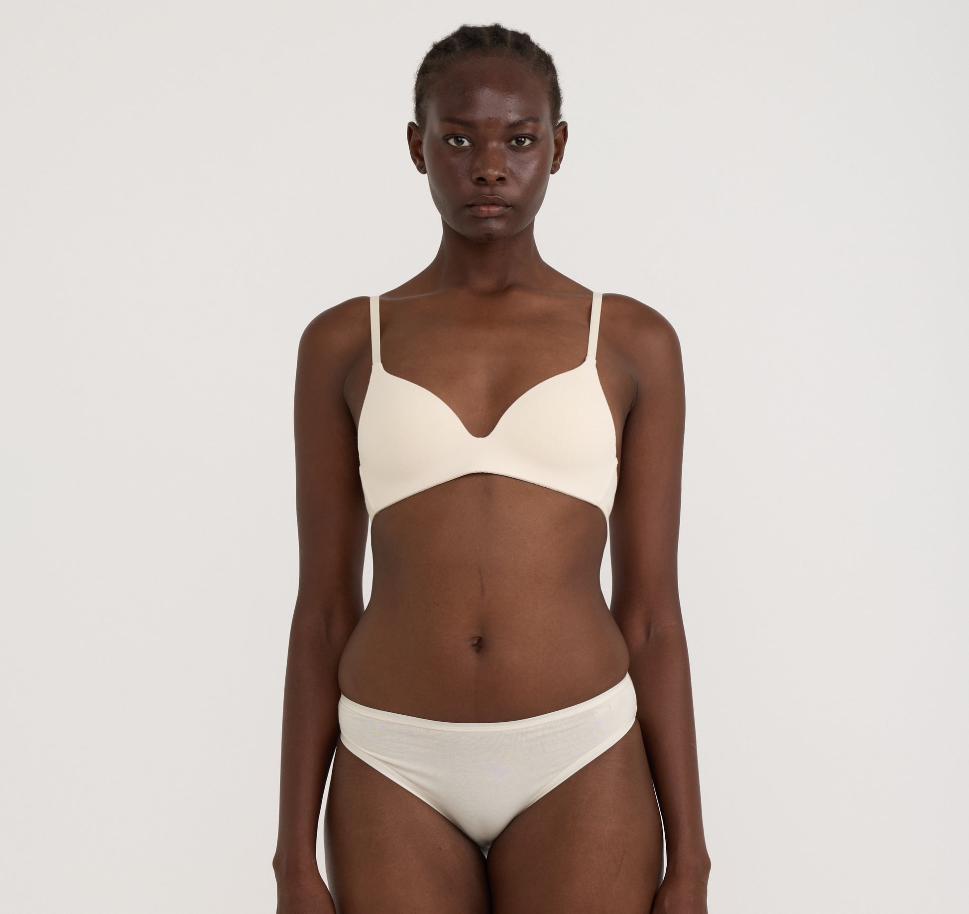 • Wireless padded bra with a plunge, triangle neckline that creates a small push-up effect