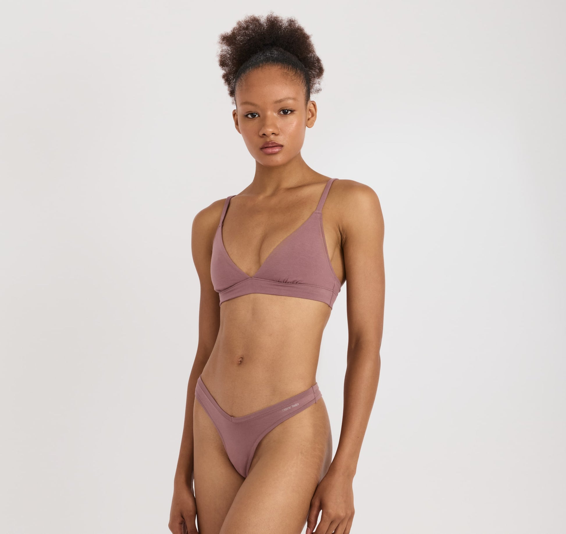 - Triangle-shaped bralette with a low-cut neckline for natural cleavage and versatility.