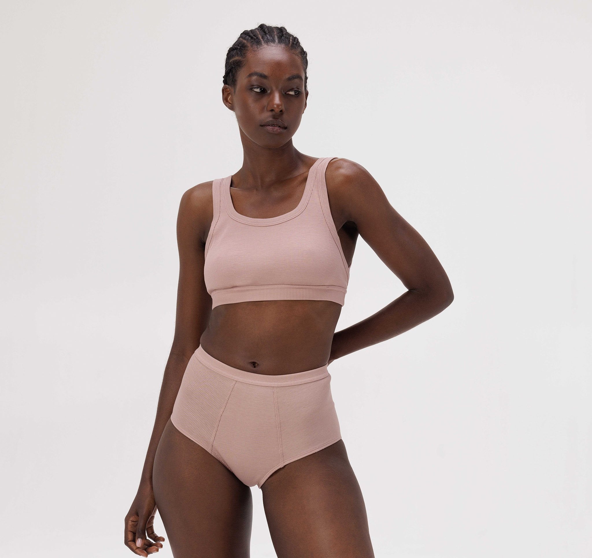 - Tank bra made with a ribbed texture in 100% organic cotton