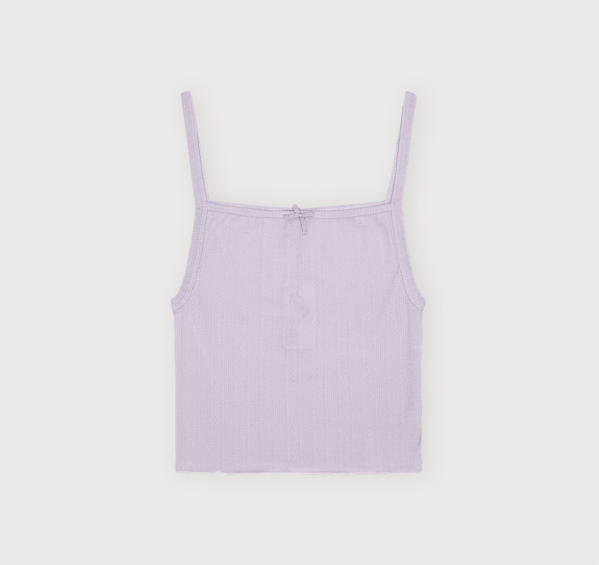 An adorable cropped tank with the sweetest little details. Made from a cozy, breathable Pointelle knit with 97% organic cotton and a hint of stretch.