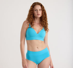 Using recycled materials can help reduce the impact of its production by conserving resources and diverting waste from landfills. Our recycled nylon is typically made with pre-consumer waste. Known for its durability, nylon can withstand frequent washing and wear without losing its shape. - 87% Recycled Nylon, 13% Elastane - We recommend using a GUPPYFRIEND Washing Bag, as all synthetic products release plastic microfibers into the environment during washing - Mild, fine machine wash at 30°C - Line dry. Do not tumble dry - Iron at a low temperature - Do not dry clean - Fits true to size