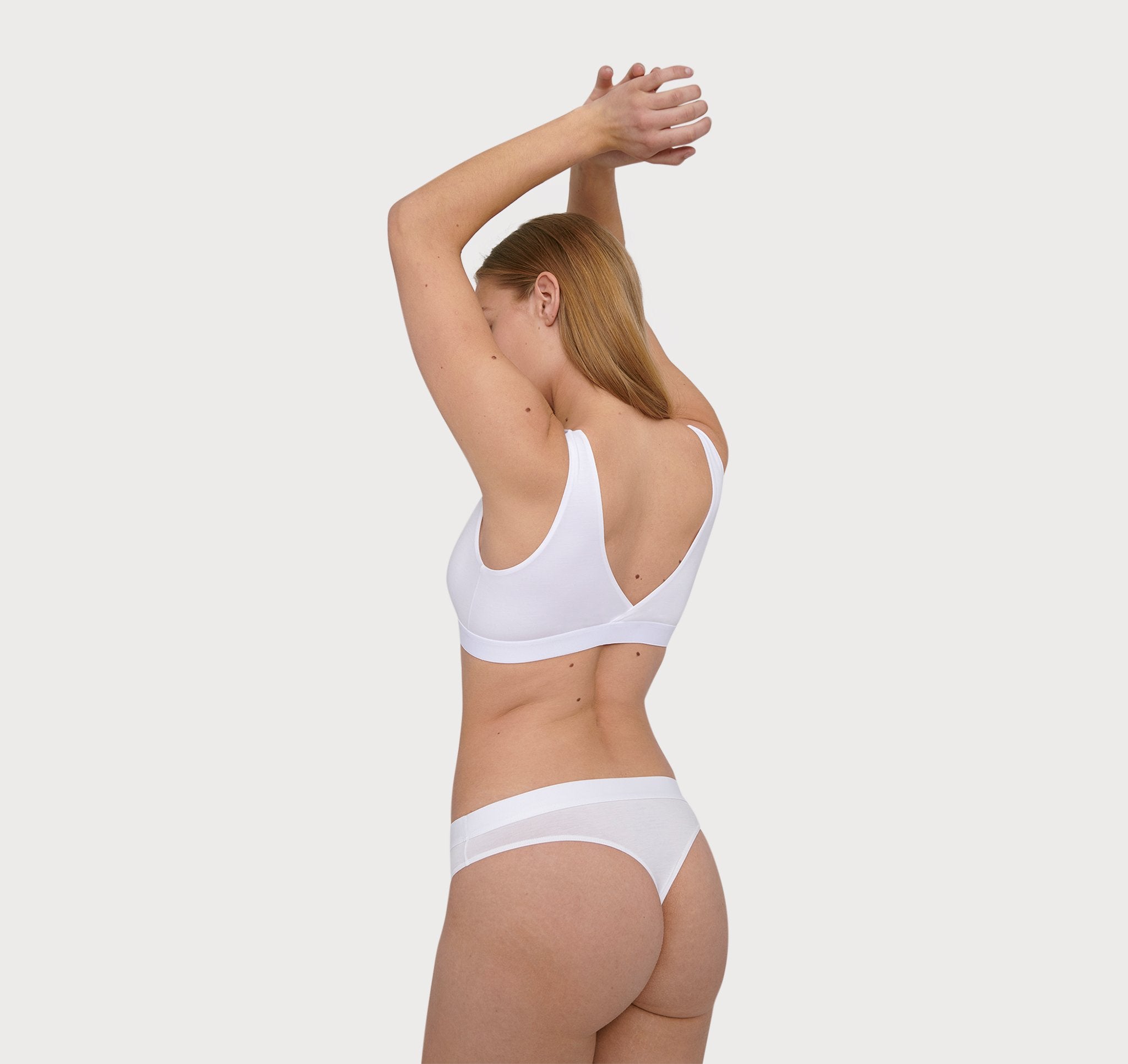 Supportive, and soft - this airy bra is as comfortable as it is cute. Made with TENCEL™ Lyocell fibers, featuring a soft elastic underband, and a cross-over design for added support. So comfortable you'll forget you're wearing it.