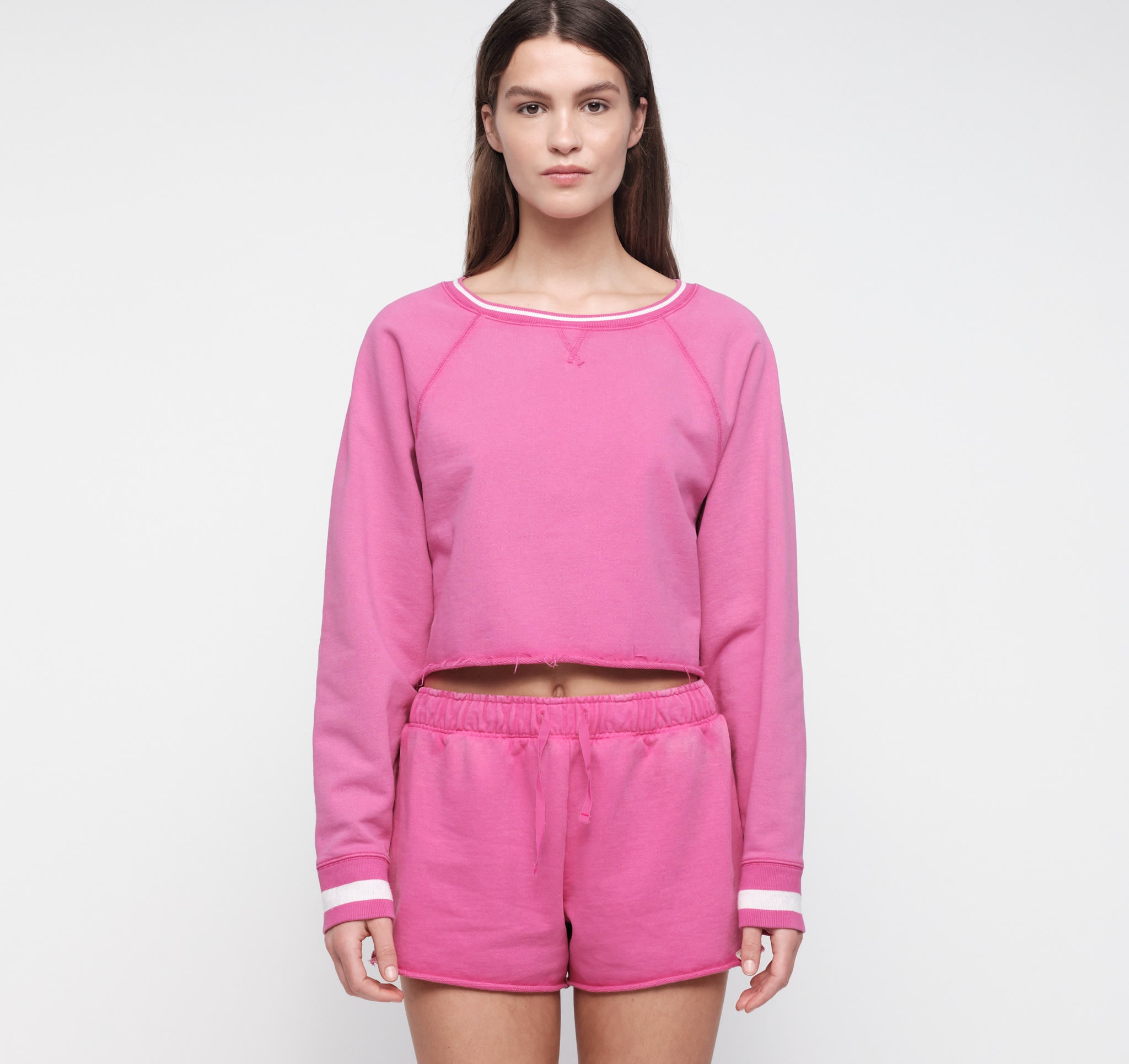- Unbrushed French terry fabric with a soft, breathable feel